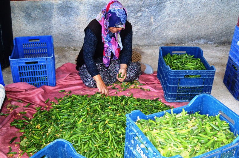 Ankara’nın Çubuk ilçesinde turşu üretiminde kullanılan ve halk arasında ‘yeşil altın’ olarak bilinen turşuluk badem salatalığın hasadı ve aynı zamanda evlerde kurulumu başladı.