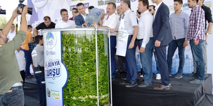 Çubuk’ta “13. Uluslararası Çubuk Kültür ve Turşu Festivali” öncesi hem festival tanıtımı hem de Guinness Rekorlar Kitabına girmek için rekor denemesi yapıldı.